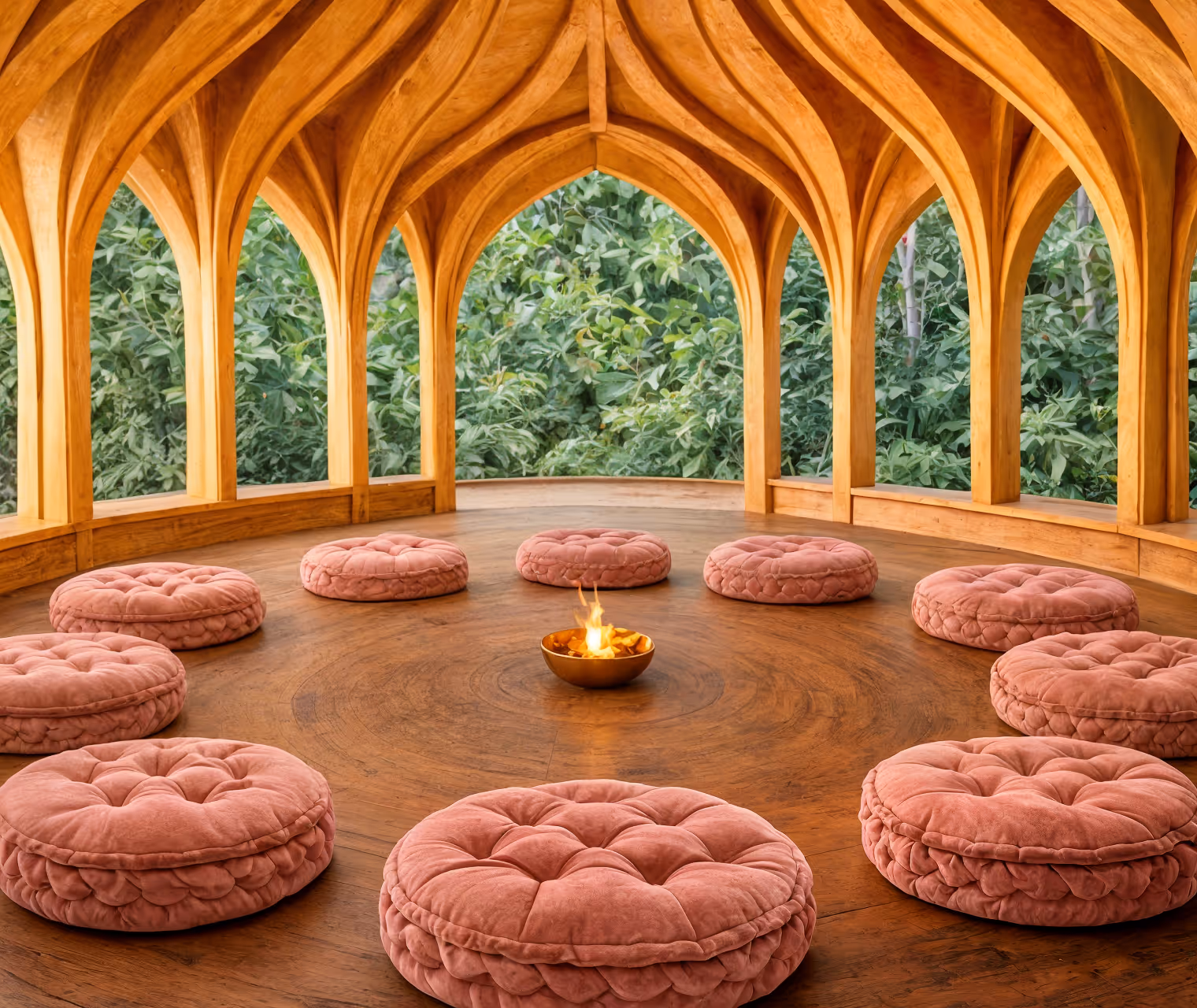 The Lotus Temple is envisioned as the central gathering space at Diamond Rose Sanctuary, dedicated to breathwork, healing and the exploration of consciousness. Designed to support transformational work, it will host breath journeys, sound ceremonies and retreats that invite participants into deeper connection with themselves, with others and with the living world around them.